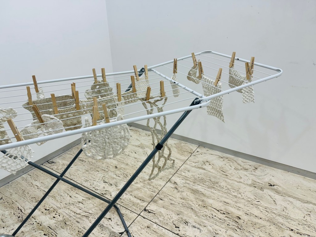 A forma ou imagem surge, não com base num pensamento racional, mas sim de movimentos de natureza instintiva. Ao longo do processo descobri que esses movimentos e decisões vinham de um lugar interior muito profundo, das entranhas/ “guts”, o que me levou a querer ver mais fundo, debaixo da pele metafórica, nos lugares inacessíveis a olho nu, do corpo e do ser.