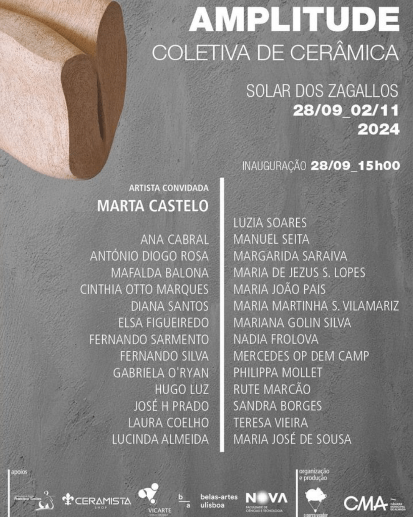 O Porco Voador, Coletivo Artístico, apresenta este ano, no Solar dos Zagallos, a 2ª edição da exposição “Amplitude – coletiva de cerâmica”, um evento que dá oportunidade a um conjunto significativo de artistas, cujo trabalho revela o potencial plástico da cerâmica, entre escultura, instalação e objetos utilitários.